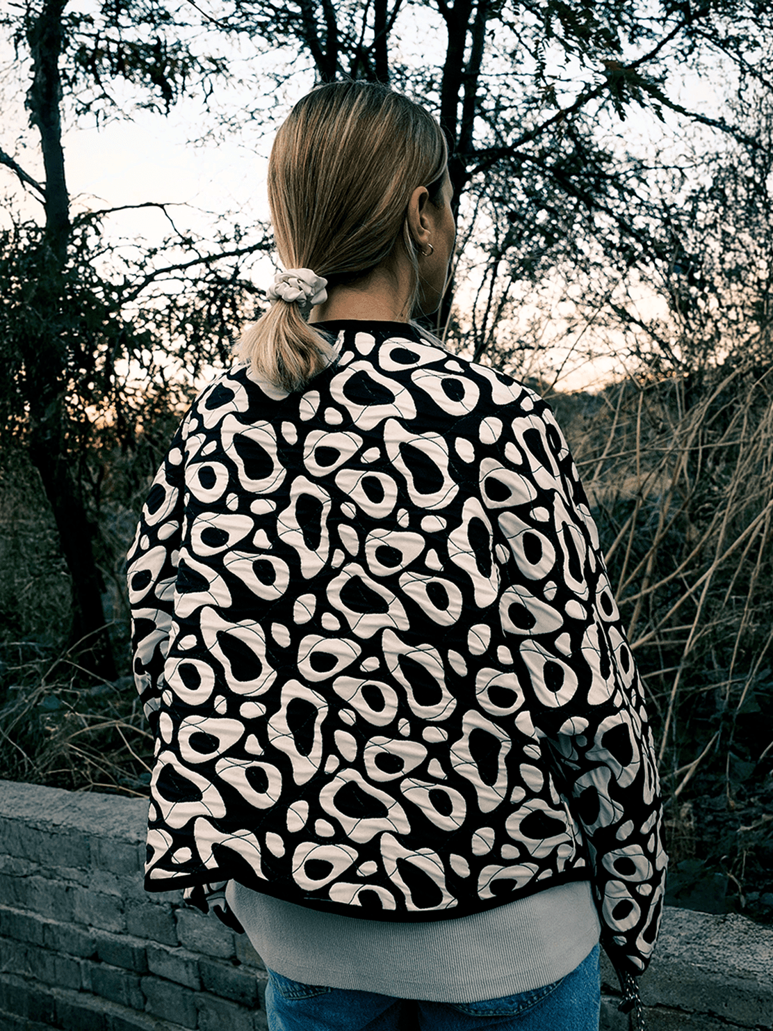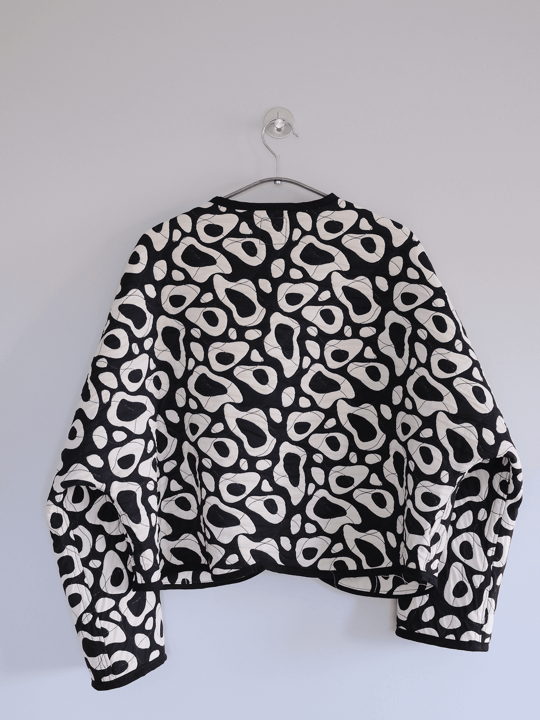 A bold yet soft layer that brings comfort to daily wear and effortless style to elevated moments. Its curved silhouette and geometric leopard pattern add a modern, expressive touch to the quilted form. Created as a single unique piece.
