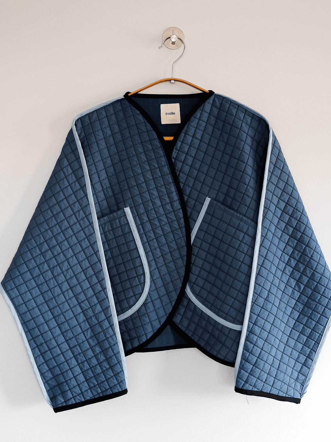 The Meri jacket features contrasting trims and two large front pockets that add both function and character. Crafted from light quilted cotton, it offers comfort and structure at once — easy to layer through the seasons.